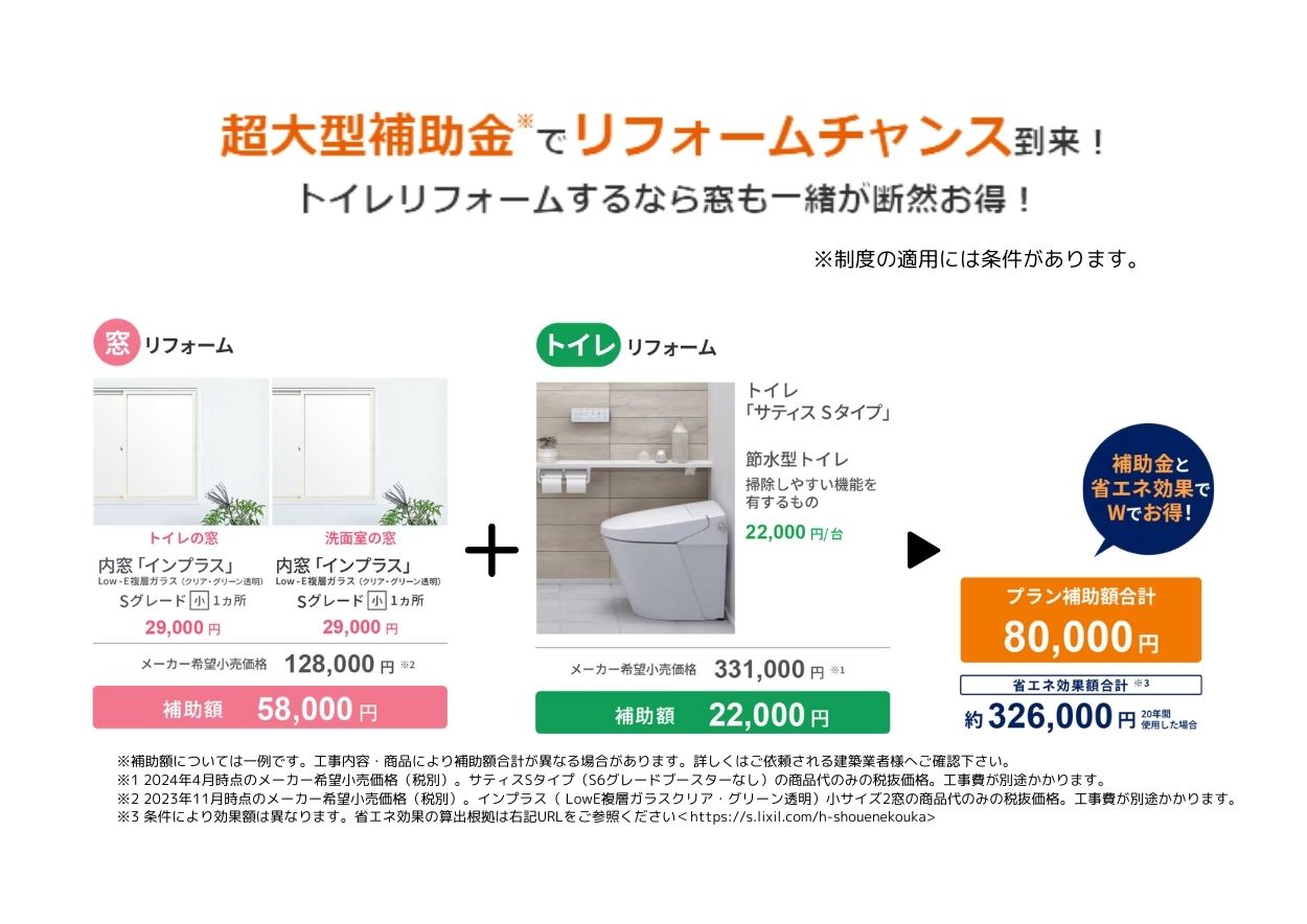 窓とトイレの対象商品をセットでご購入、リフォームいただいたお客さまに