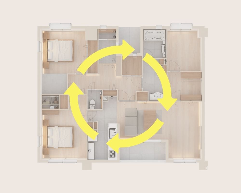 実はそれ、家の中の“動線”がうまく整っていないサインなんです。動線とは、家の中で人が移動するルートや動きのこと。この動線がスムーズじゃないと、収納や家事の効率が悪くなってしまいます。