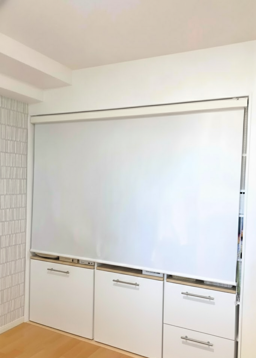ロールスクリーンを使うことで、開閉スペースを取らずに目隠しができ、空間をすっきり保てます。下部に使いやすい引き出し収納を設ければ、衣類や小物を分類して収納できるようになりました。この組み合わせにより、収納力が大幅に向上するとともに、日々の使い勝手も格段にアップ。シンプルで美しいデザインは、室内の雰囲気を損なわず、実用性と見た目を両立した仕上がりとなっています!