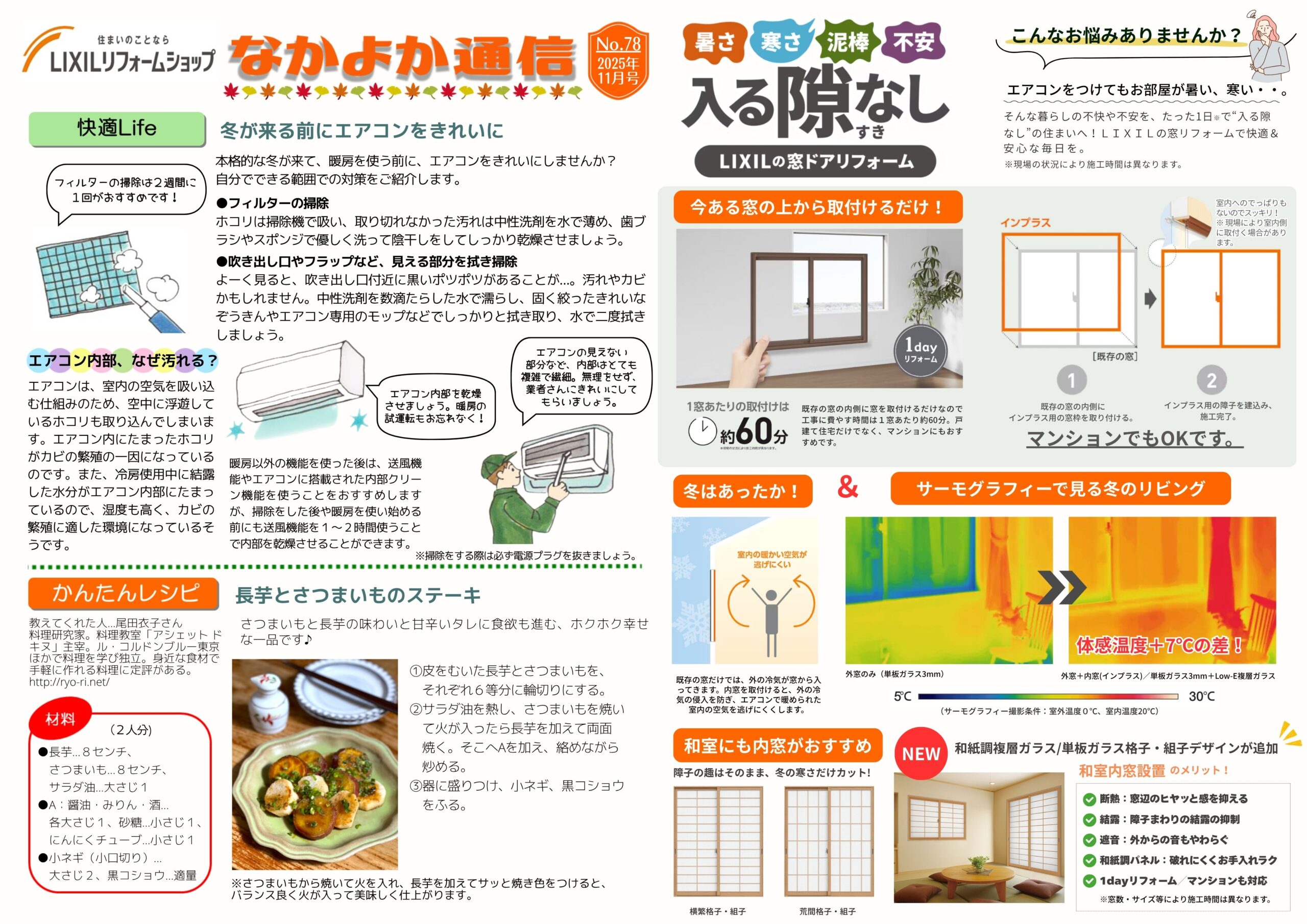 毎月ご好評いただいている「なかよか通信」の11月号(No.78)を発行いたしました♪