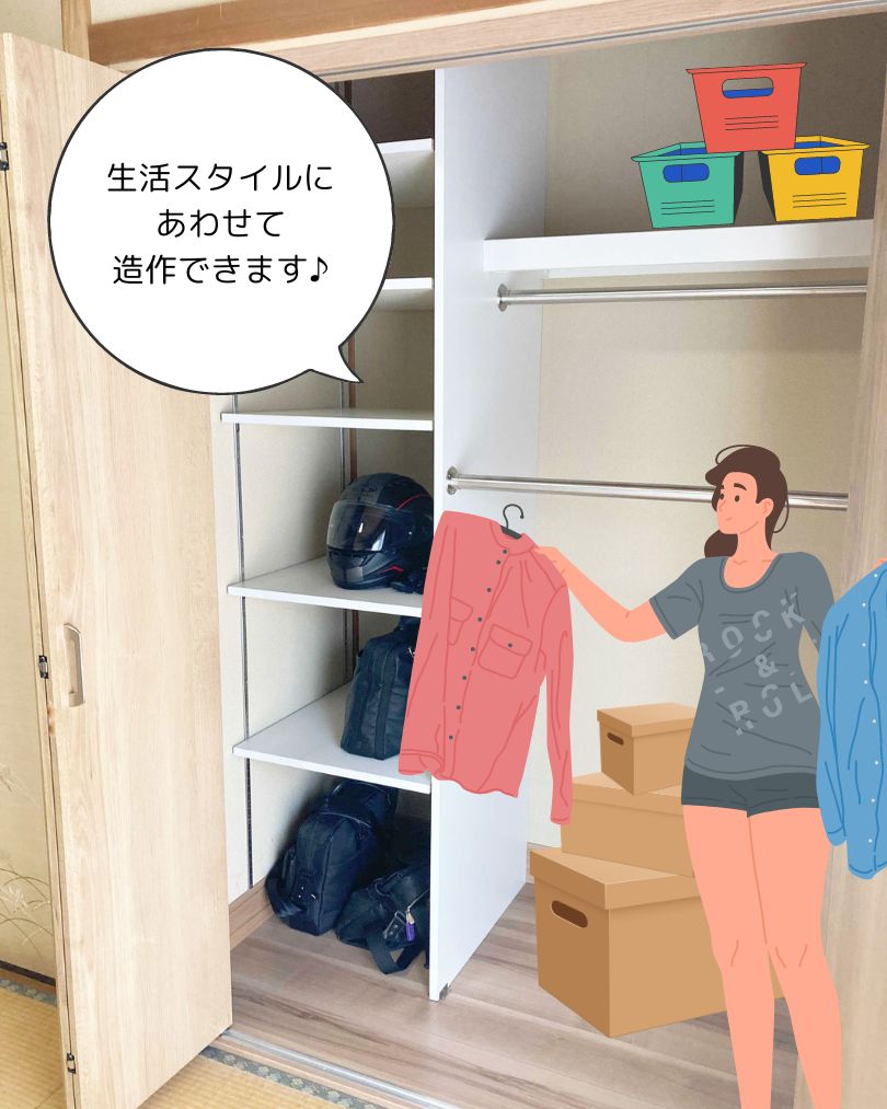 お客様の生活スタイルに合わせて、オーダーメイドの収納を造作いたしますので、