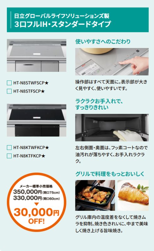 日立グローバルライフソリューションズ製 3口フルIH・スタンダードタイプ