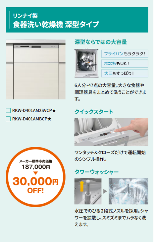 リンナイ製 食器洗い乾燥機 深型タイプ