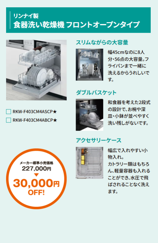 リンナイ製 食器洗い乾燥機 フロントオープンタイプ